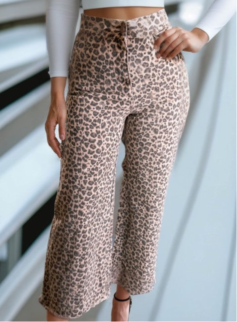 Elevate your fashion game with our Animal Print High Waist Jeans. These trendy jeans feature a flattering high waist design and edgy animal print pattern. With a frayed hem for added style, these jeans are the perfect addition to your wardrobe. Look stylish and on-trend with our animal print jeans.