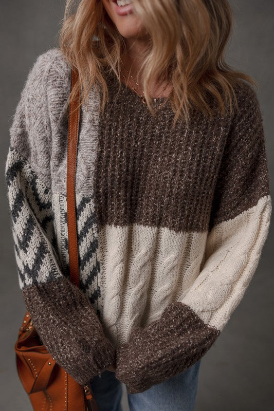 Our casual color block sweater features a soft and comfortable design that is perfect for fall events. The patchwork design adds a touch of style, while the back tie detail adds a unique element. Stay cozy and fashionable with this must-have piece.
