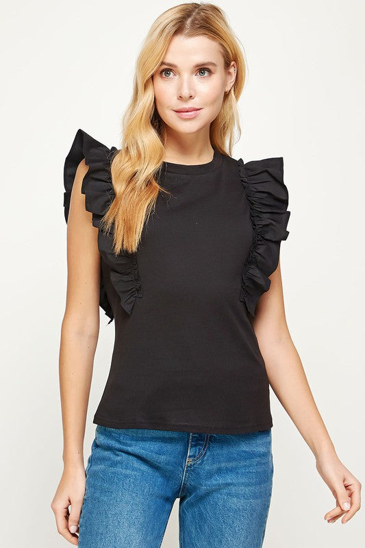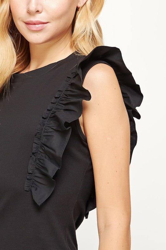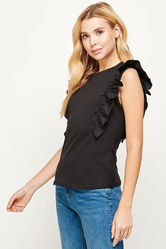 - This sweet classic top is a fashionista's must-have! With stylish ruffles and a flattering sleeveless silhouette, it's sure to be a hit with everyone - even the pickiest fashion critics! You can show off your unique style in our fun and flirty top!