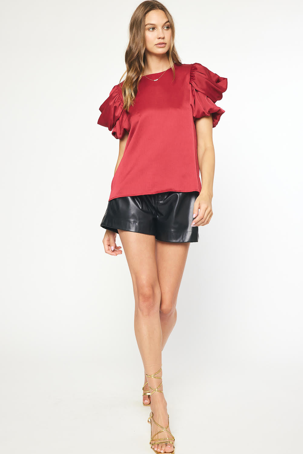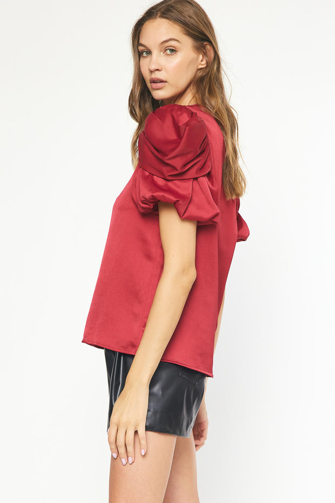 This Red Carpet Top makes an elegant statement piece for your wardrobe. Crafted from satin, featuring intricate ruching at the sleeves and a discreet button closure at the back, this top will take your look to the next level. Lined and non-sheer with lightweight construction.